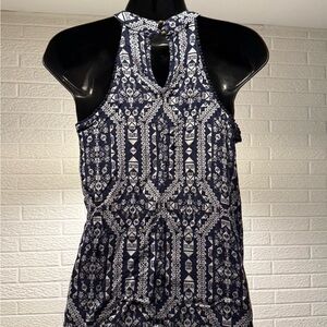Xhilaration Navy and White Patterned Top