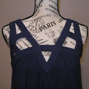 Xhilaration New Women's Medium Sun Dress Navy Blue Cut Outs Sleeveless V Neck