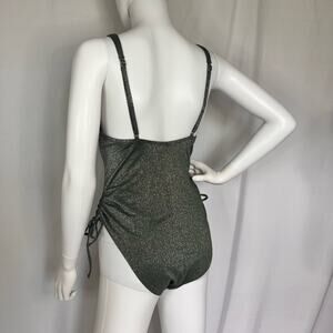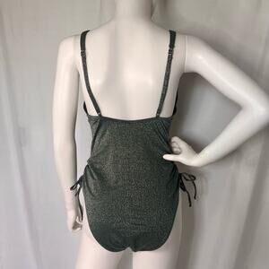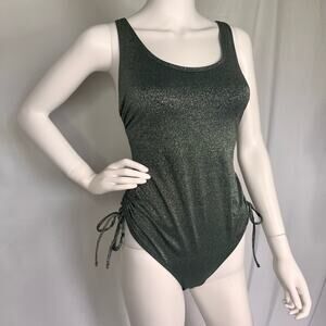 Xhilaration One-Piece Dark Green Bathing Suit - Size Large - Cinches at hips - Dark Gray Green - Metallic - Adjustable straps - excellent pre-owned condition!