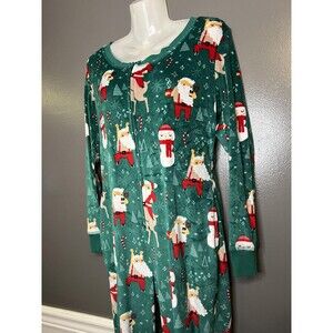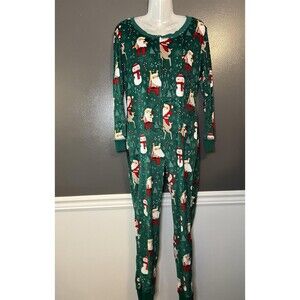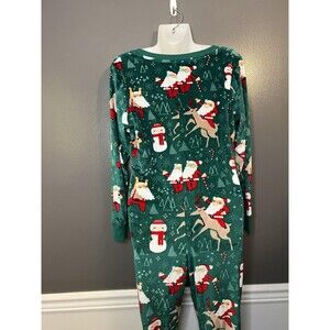 Xhilaration One-piece Pajamas Womens XS/S Green Christmas Santa Reindeer Zip