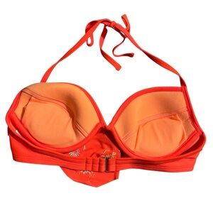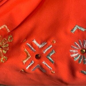 Xhilaration Orange Coral Embroidered Beaded Aztec Bikini Top size Small