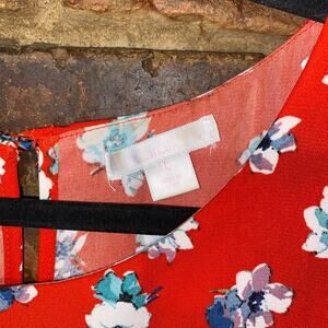 Xhilaration Orange Floral Tiered Peek-A-Boo Keyhole Sleeveless Top Women's Large
