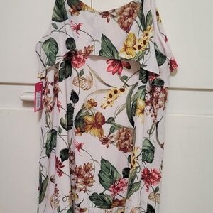 Chic dress with vibrant floral design. Features spaghetti straps and a flowy fit. Ideal for casual wear. multi color.