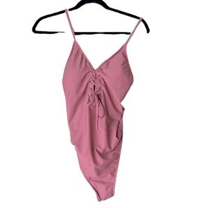 Xhilaration Pink Lace Up Front One Piece Swimsuit Size Large