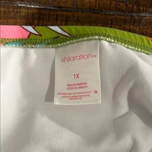 Dive into summer with the Xhilaration bikini, featuring a vibrant pink and blue tropical print. This stylish swimwear set includes a bandeau-style top and matching high-waisted bottoms, perfect for making a splash at the beach or pool.