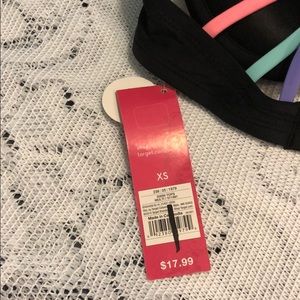 New! Tags are marked out but still attached. Push-up bikini top with underwire. Cute twist in front. Single back fastener. Cross back style straps with fun colors! Super cute!