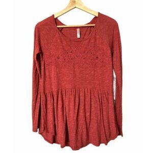 Xhilaration Red Peasant Peplum Embroidered Long Sleeve Top S