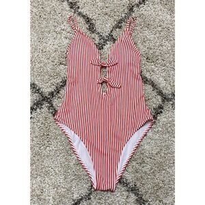 Xhilaration Red Striped One Piece Swimsuit Size Medium
