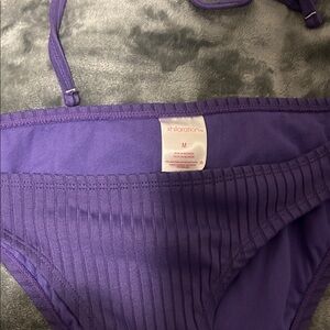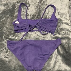 Xhilaration purple ribbed bikini set. Features a unique cut-out design on the top. Size Medium (for both). Bra cups have been removed. Good condition.
