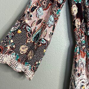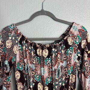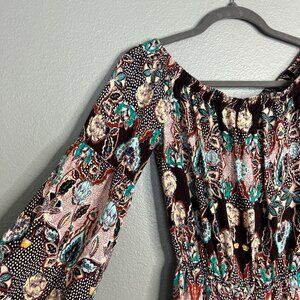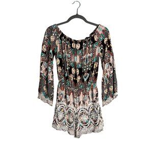 Xhilaration Romper Size S Long Sleeve Off Shoulder Crochet Trim Boho Floral