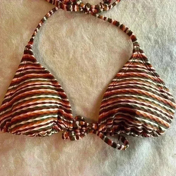 Cute!!! Very cute bikini top in perfect condition! Light padding, ties around neck and back. Wear with your favorite black swim bottoms! Great quality, smoke free home. SZ S