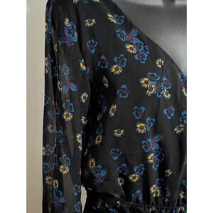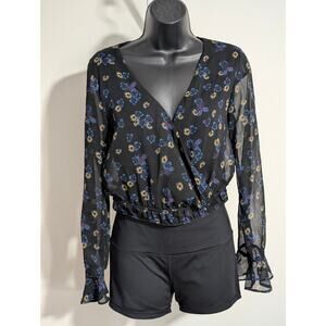 Xhilaration Sheer Floral Top Surplice Wrap Cropped Ruffled Blouse Small