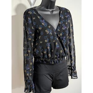 Xhilaration Sheer Floral Wrap Cropped Blouse-Size S