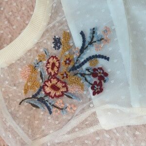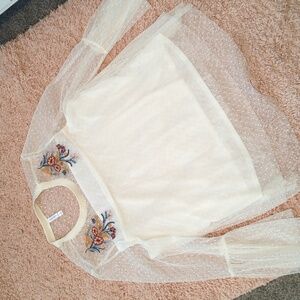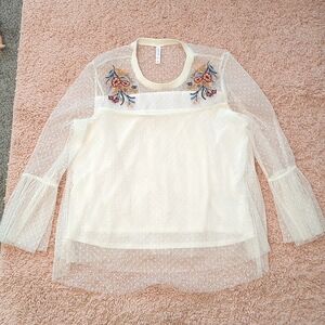 Xhilaration Sheer Floral White Lace Bell Sleeve Embroidery Shirt Size L