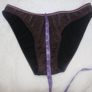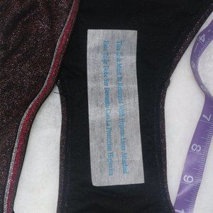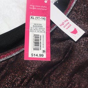 Black with pink/rose gold shimmer all over and a pink, silver, and rose gold elastic waist band.