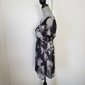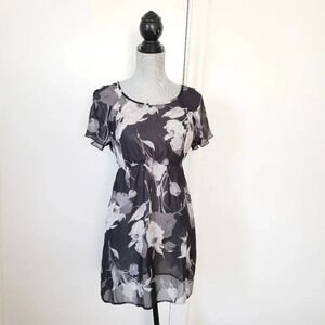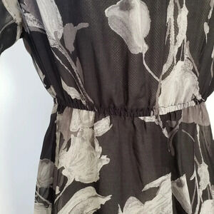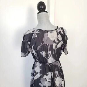 Xhilaration Shor Sleeve Cold Shoulder Sheer Black Floral Blouse Top XS