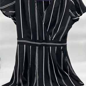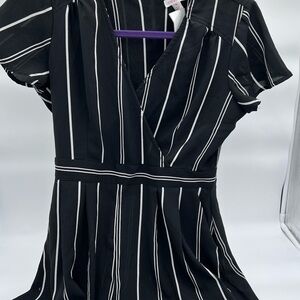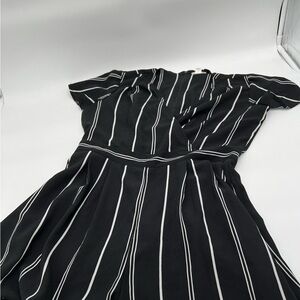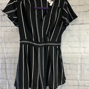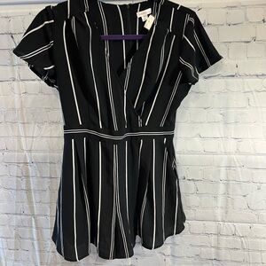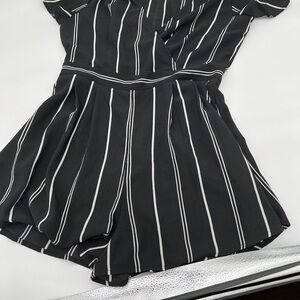 Elevate your summer wardrobe with this stylish black and white striped romper from Xhilaration. Featuring short sleeves and flattering pleats below the waist, this piece is perfect for summer nights out—whether you’re dining, dancing, or socializing.