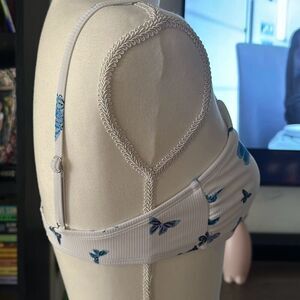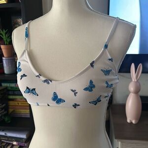 Xhiliaration size medium white and blue butterfly print bikini top in amazing condition
