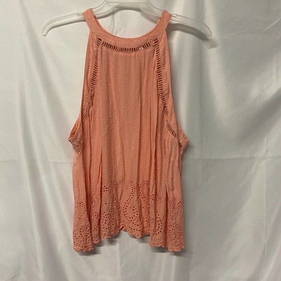 Xhilaration Sleeveless Top Blouse Eyelet Lace Peachy Salmon Color Race Back 3X