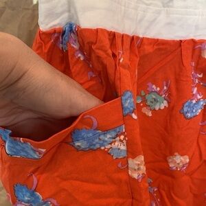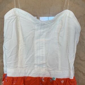Xhilaration || Strapless white Red Floral Graphic Print Dress with Pockets, back zipper closure, smocking, unlined.