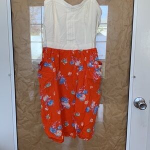 Xhilaration Strapless White Red Floral Graphic Print Dress with Pockets NWOT XL