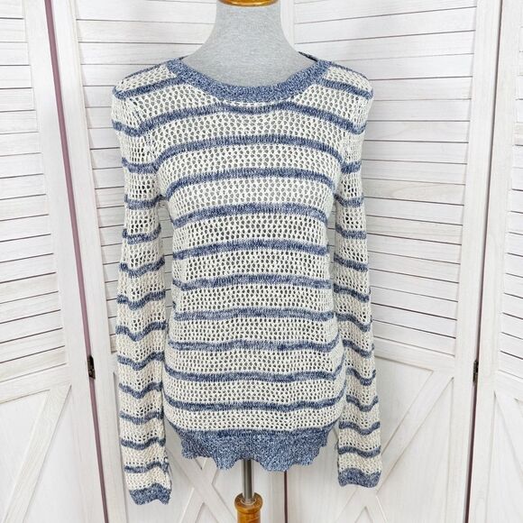 Xhilaration Striped Open Weave Mesh Sweater Blue Cream Medium