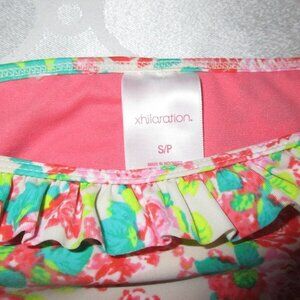 Xhilaration Swimsuit Bikni Thong Bottom Size Petite PS Pink Floral Ruffle Waist.