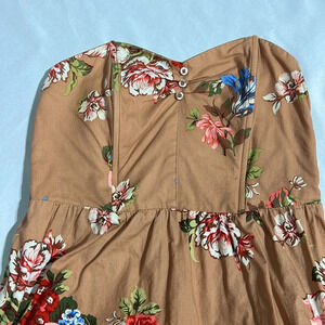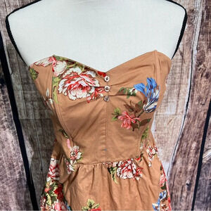 Xhilaration Tan Floral Corset Top Strapless Summer Dress with Pockets - sz MED