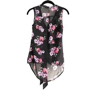 Xhilaration Tank Top S Semi Sheer Floral Front Tie Bow Pink Black Summer Girly