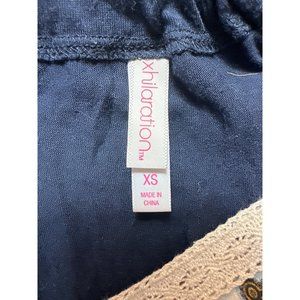 This Xhilaration tank top in XS size boasts a unique blend of floral and geometric patterns in vibrant blue and red shades. The polyester and rayon blend ensures a comfortable, flowy fit.