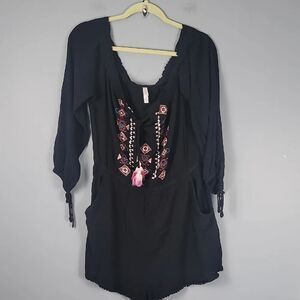 Xhilaration Target Black Off-Shoulder Romper with Floral Embroidery