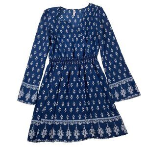 Xhilaration Target Blue/Navy & White Floral Print Long Sleeve Dress. Size Medium