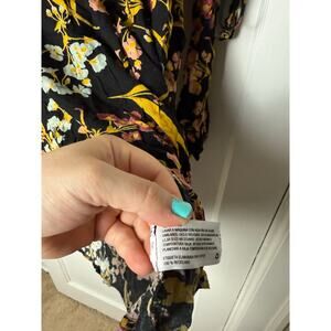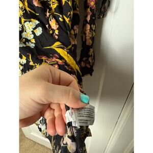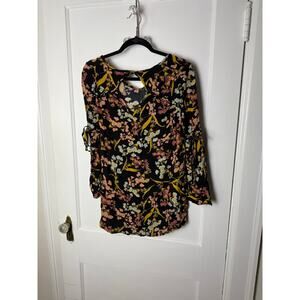 Xhilaration Tunic Top Blouse Women's XS Black Moody Floral Boho Peasant Ruffle