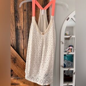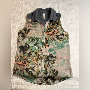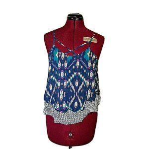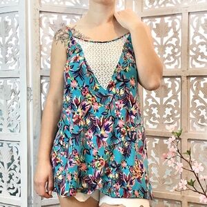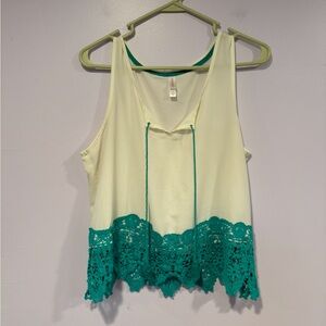 π Xhilaration Turquoise Button-Down Tank with Lace Back