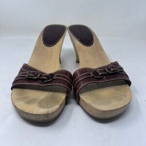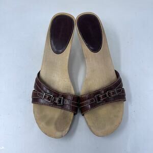 Xhilaration Vintage Sandal Women's 9.5 Y2K Leather Open Toe Wooden Platform Heel