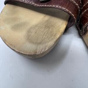 Xhilaration Vintage Sandal Women's 9.5 Y2K Leather Open Toe Wooden 3.25" Platform Heel in preowned condition from a smoke-free home. Wear to leather and wood as shown. Overall height 3.25" with .75" platform.