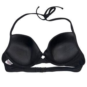 Xhilaration Womens Bikini Top Underwired Lined Solid Halter Top Swimsuit Black