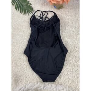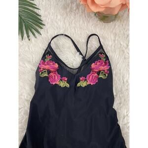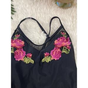 Xhilaration Womens Black Floral Embroidered V-neck Swimsuit Size XS Strappy Back