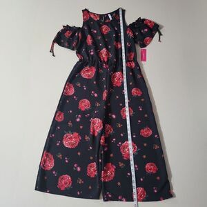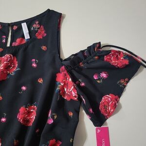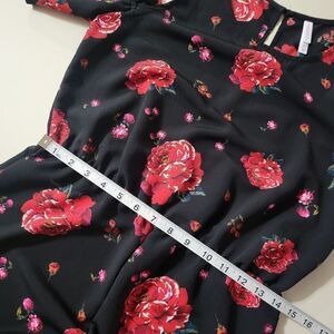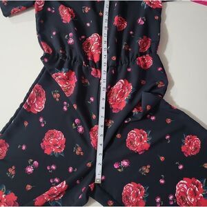 Xhilaration Women's Black Red Floral Cold Shoulder One Piece Ruffle Jumpsuit
