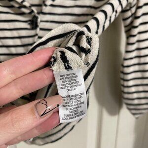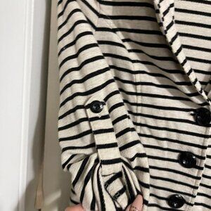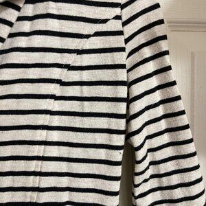 Xhilaration Womens Black Cream Striped Roll Tab Sleeve Button Semi Cropped Blazer XS. NOTE: overall wash wear, see photos. Measurements Shoulder to shoulder: 16" Underarm to underarm: 16" Length: 21" Sleeve: 18" Offers always welcome! Measurements are approximations taken while hanging