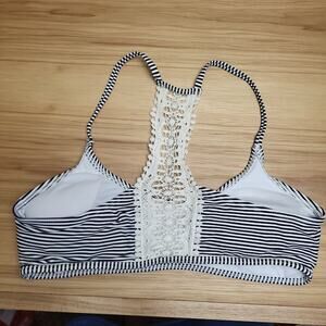 Xhilaration Womens Blue White Striped Crochet Racerback Bikini Top Size Large