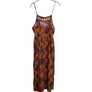 Xhilaration Women's Boho Wide Leg Cropped Jumpsuit Size Large Multicolor Mixed Print Back Zip