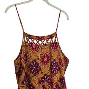 Xhilaration Womens Boho Wide Leg Crop Jumpsuit Size Large Multicolor Mixed Print