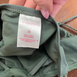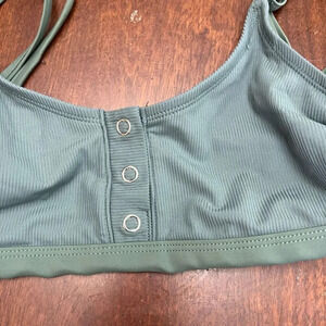 Xhilaration Womens Army Green Bikini Set Medium Two Piece Ribbed Snap Front Bralette