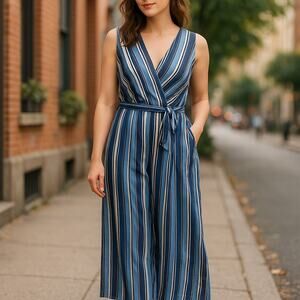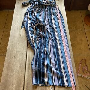 Xhilaration Womens Juniors Romper Size Small Blue Lavender Striped Wide Leg
