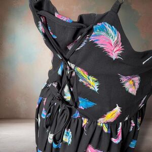 Xhilaration Women's Mini Dress Large Black with Multicolor Feathers Modern Boho