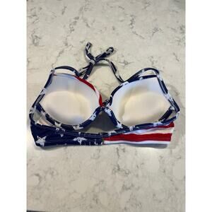 Xhilaration Women’s Patriotic Halter Tie Swimsuit Push Up Top Size S Blue Red