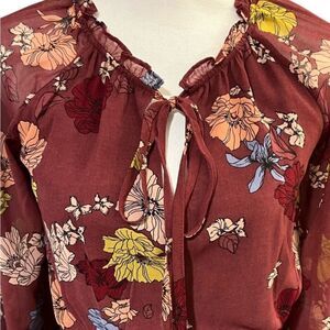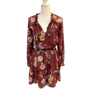 Xhilaration Burgundy Floral Ruffled Long Sleeve Dress S Romantic Feminine Boho