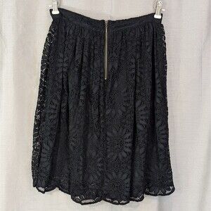 The Xhilaration Women's Size M Black Lace Lined Skirt is a whimsical and darkly elegant piece perfect for various occasions such as travel, weddings, parties, or casual outings. The floral pattern and lace fabric give it a feminine and vintage feel, while the zipper closure adds a modern touch. Ideal for all seasons, this knee-length skirt features a flattering fit and is machine washable for easy care. With its goth and fairy themes, this skirt combines elements of art, rock, punk, and hipster styles for a unique and stylish look.