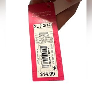 Bottom: Navy blue and white striped ruched and cheeky size XL.